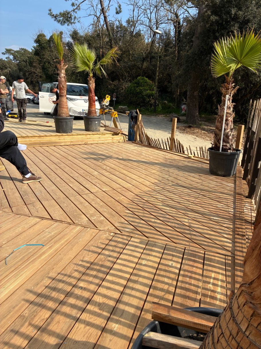 Notre équipe est formée et professionnelle pour réaliser la pose de votre terrasse de mobil-home. Nous mettons un point d'honneur à offrir un service de qualité, en respectant les normes de sécurité et d'esthétique. Grâce à notre expertise, nous vous garantissons une installation durable et parfaitement adaptée à vos besoins. Faites confiance à nos spécialistes pour transformer votre espace extérieur en un lieu agréable et fonctionnel.